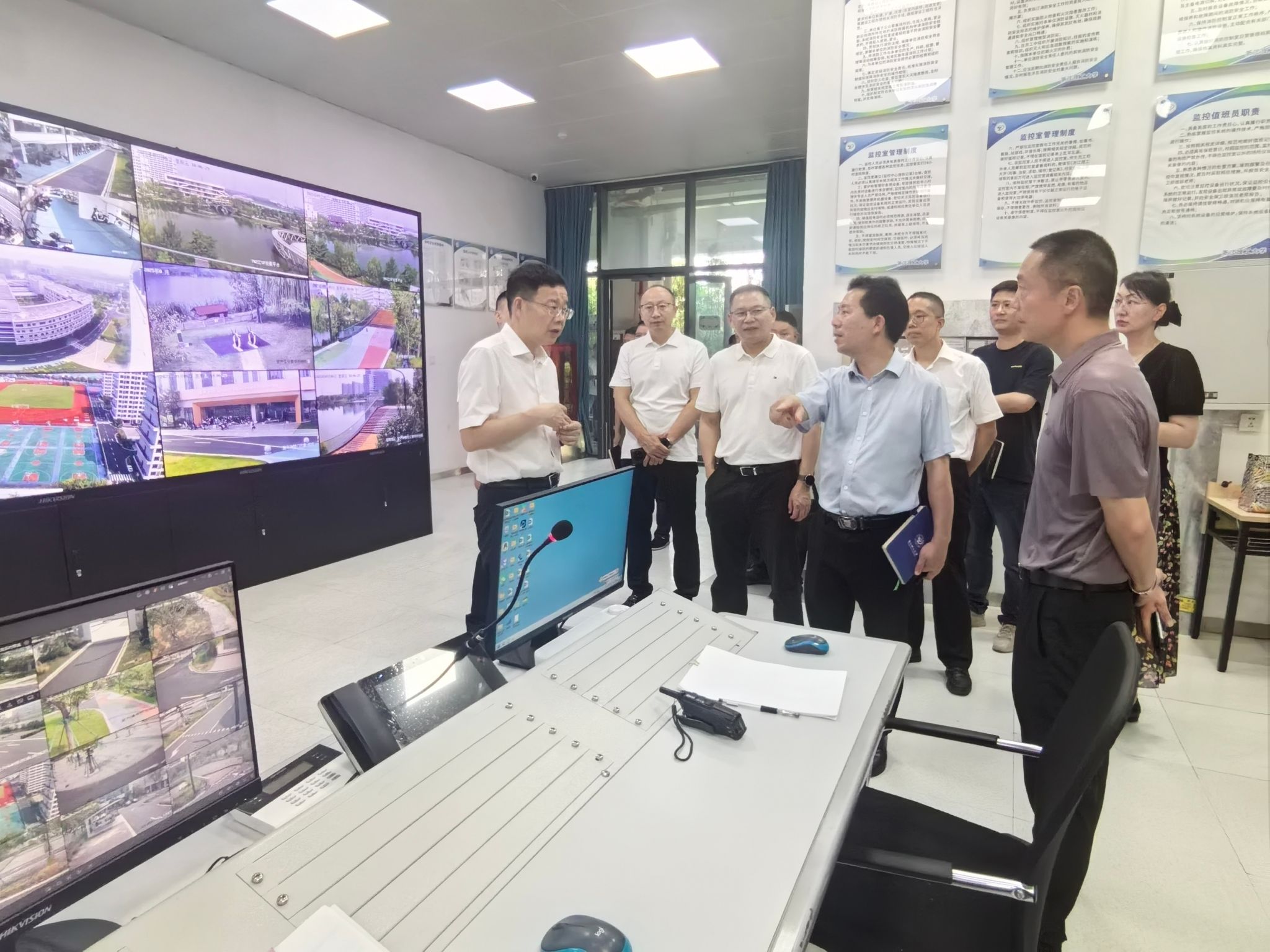 会前,校地双方一行人在临平校区南门,现场观摩了校园反恐防暴应急演练。随后,调研团队先后走访校区消防监控室、学生食堂等重点区域,详细查看了消防设施运行、视频监控覆盖、食堂食品采购存储、餐具消毒及后厨卫生管理等情况,对校园安全防控体系建设和后勤保障工作进行全方位了解,现场就发现的细节问题提出初步优化建议。