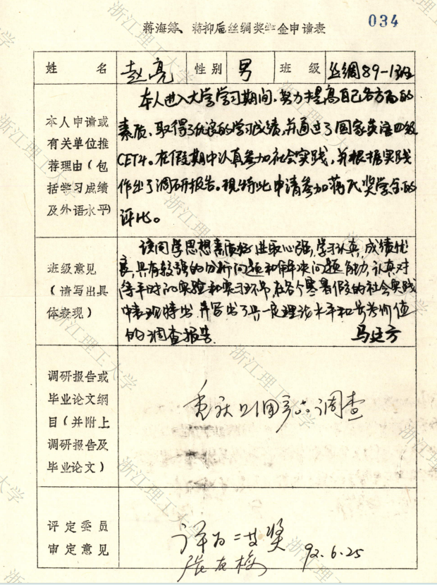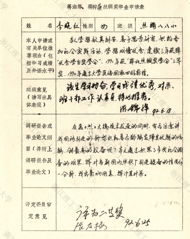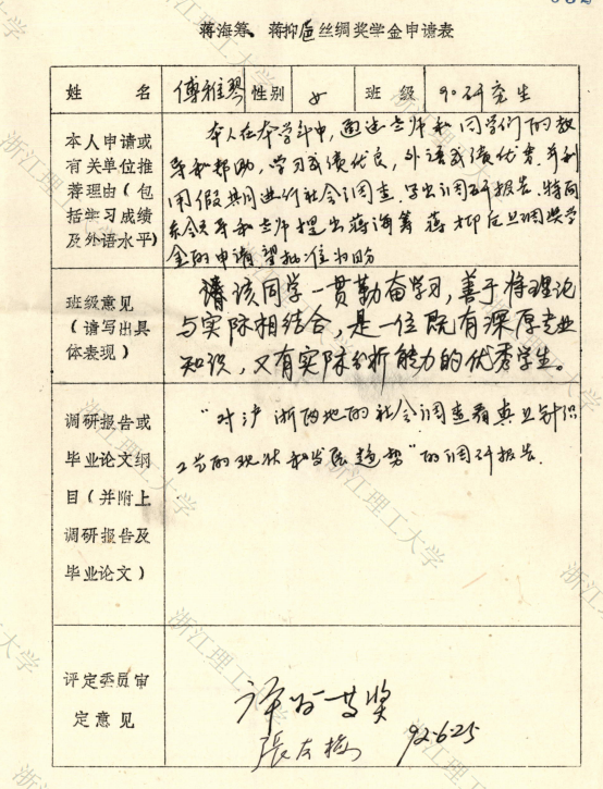 ▲蒋海筹、蒋抑卮丝绸奖学金部分申请表