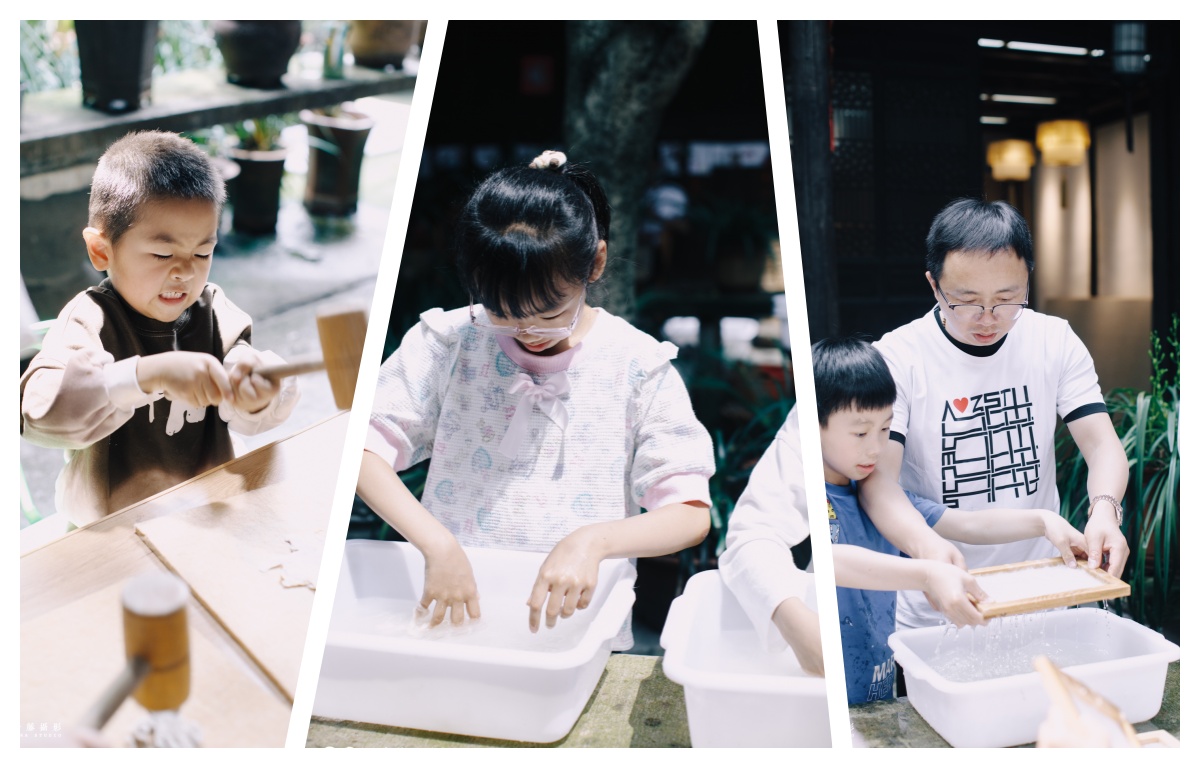 孩子们感受着传统工艺的奇妙,亲手制作出一张张充满创意的纸张,也意识到纸张的来之不易。