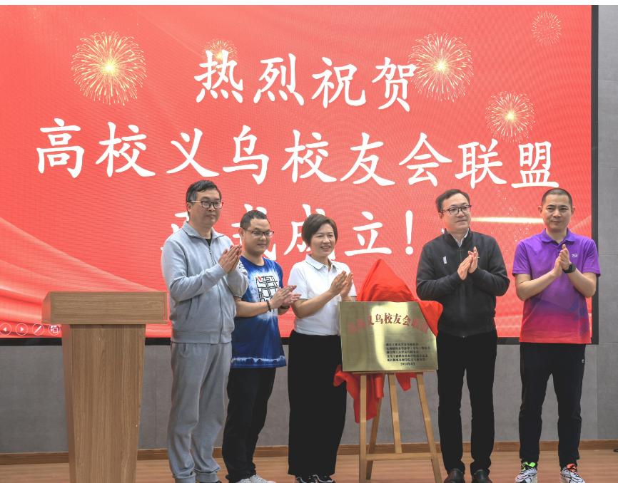 活动中,浙江理工大学义乌校友会执行会长楼潭杰与浙江工业大学义乌校友会会长金罕岗、江西财经大学金华(义乌)校友会会长姜宝珍、浙江省机电技师学院校长张伟等共同见证高校义乌校友会联盟正式揭牌成立。这不仅为校友们提供了一个新的交流与合作平台,更是积极响应了浙江省全面加强“三支队伍”建设的战略部署。