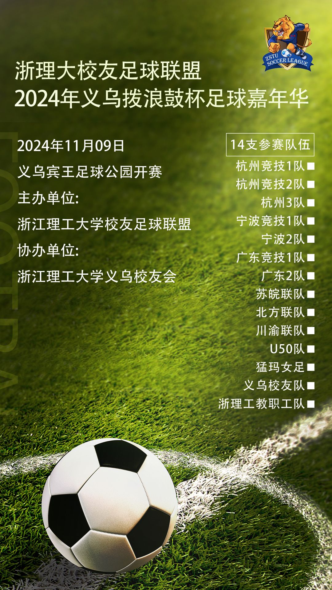浙江理工大学义乌校友会以这场足球联谊赛为起点,正式成立义乌校友会足球队为11月份的义乌拨浪鼓杯足球嘉年华做准备,欢迎校友们积极参与活动,共同努力将义乌校友会打造成一个有凝聚力的相互交流、共同成长的平台,也为推动学校的发展增添新的力量。