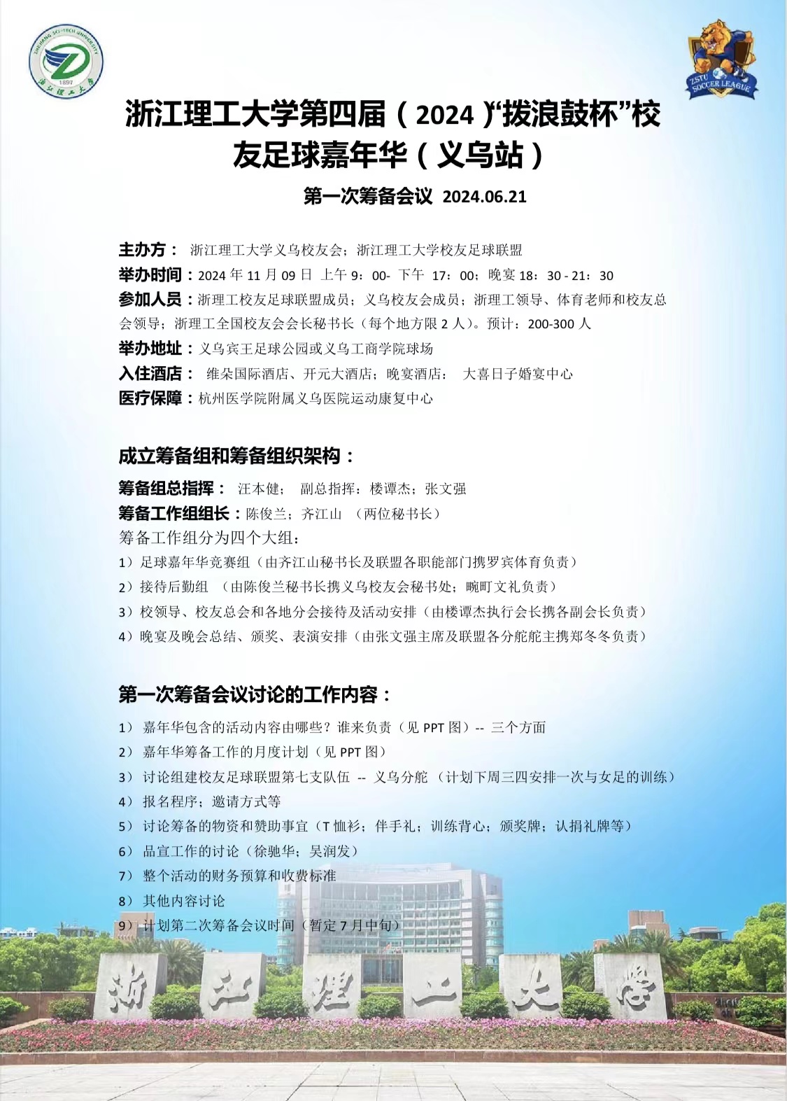 浙江理工大学校友足球联盟2024第四届义乌拨浪鼓杯足球嘉年华 首次筹备会会议纪要