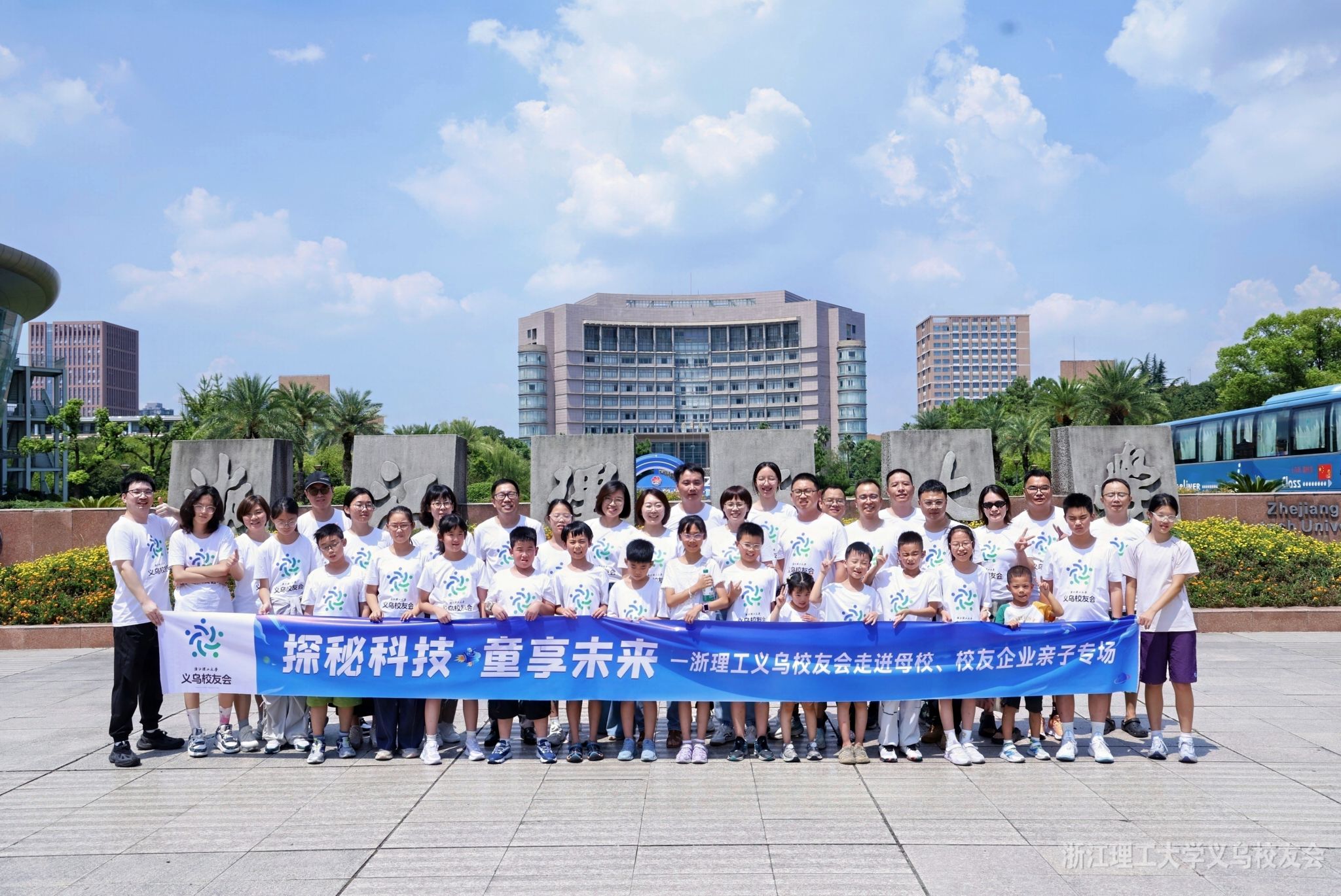 8月19日,以“探秘科技,童享未来”为主题,浙江理工大学义乌校友会组织了一场别开生面的暑期专场活动——走进母校与校友企业。通过一天的参观、互动与交流,大人与孩子们共同感受科技魅力、重温校园记忆,完成了一场知识与情怀交织的夏日之旅。